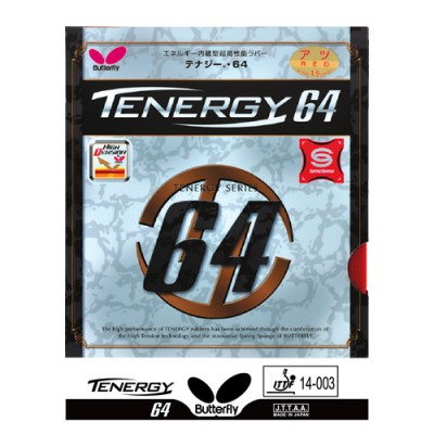 「エネルギー内蔵技術」の優れた弾性と、「スプリング・スポンジ」による「ボールを包み込む感覚」や「打球の回転とコントロール性能を向上させる性能」を最大限に引き出すように設計された“開発コードNo.64”のツブ形状を採用。打球時にボールを包み込み、回転をかけて高速のボールを打ち返すことができる『テナジー・64』は、これまでにない新感覚のスピードラバーです。【2017年全日本選手権チャンピオンギア】平野美宇選手 バック面に使用(当時) 【2016年全日本選手権チャンピオンギア】石川佳純選手 バック面に使用(当時)【2015年全日本選手権チャンピオンギア】石川佳純選手 バック面に使用(当時)【2014年全日本選手権チャンピオンギア】石川佳純選手 バック面に使用(当時) 【2015年全日本選手権チャンピオンギア】水谷隼選手 両面に使用(当時) 【2014年全日本選手権チャンピオンギア】水谷隼選手 両面に使用(当時)